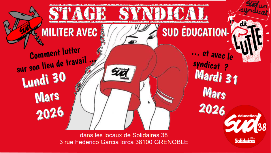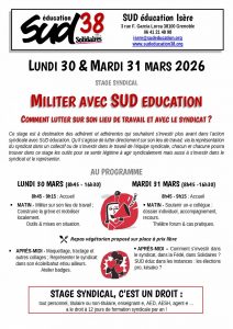 Ce stage est à destination des adhérent et adhérentes qui souhaitent s’investir plus avant dans l’action syndicale avec SUD éducation. Qu’il s’agisse de lutter directement sur son lieu de travail, via la représentation du syndicat dans un collectif ou de s’investir dans le travail de l’équipe syndicale, chacun et chacune pourra trouver dans ce stage les outils pour se sentir légitime à agir syndicalement mais aussi à s’investir dans le syndicat et le représenter.