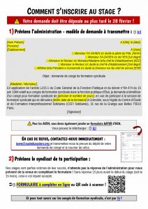 Pense à faire rapidement ta demande d’absence pour formation syndicale et à remplir le sondage pour nous avertir de ta présence